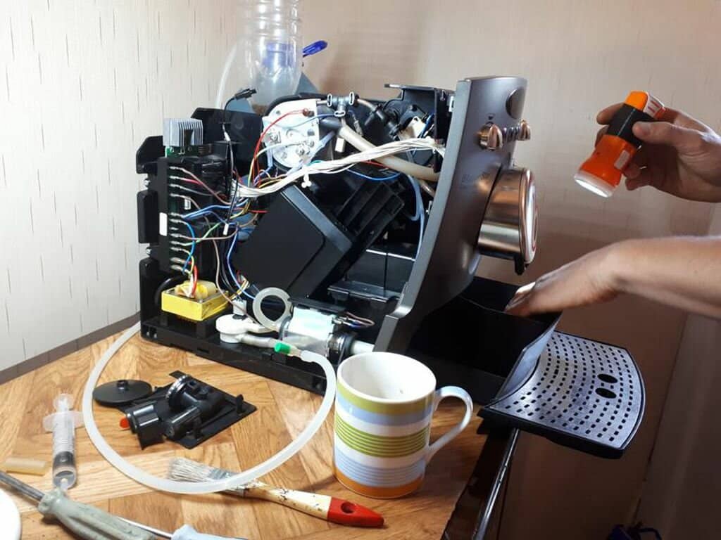 Другой случай, когда у кофемашины сломалась помпа. Для устранения этой неисправности необходимо отвезти кофемашину в сервисный центр, где мы осуществим полную диагностику и ремонт после чего кофемашина будет доставлена обратно клиенту.